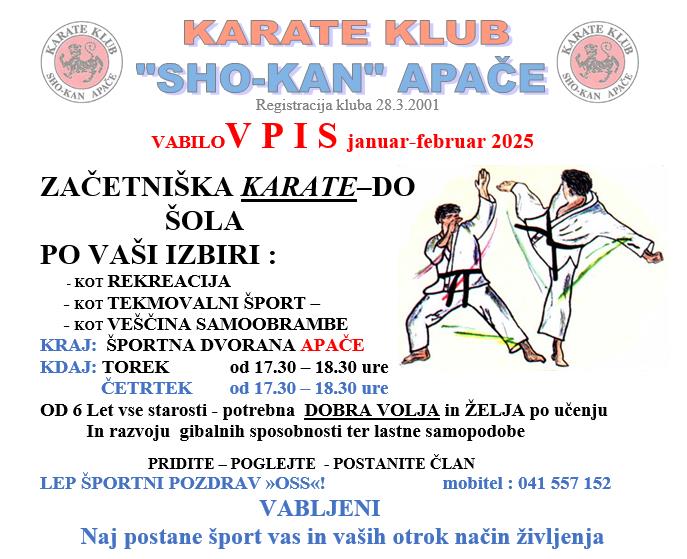 VABILO K VPISU: KARATE KLUB "SHO-KAN" APAČE
