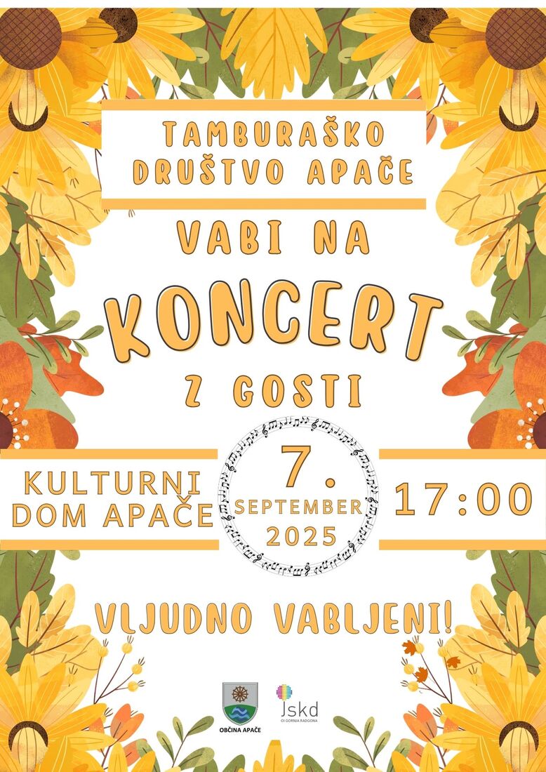 Tamburaško društvo Apače vas prisrčno vabi na koncert z gosti, ki bo 7. septembra 2025, ob 17:00 uri, v Kulturnem domu Apače.