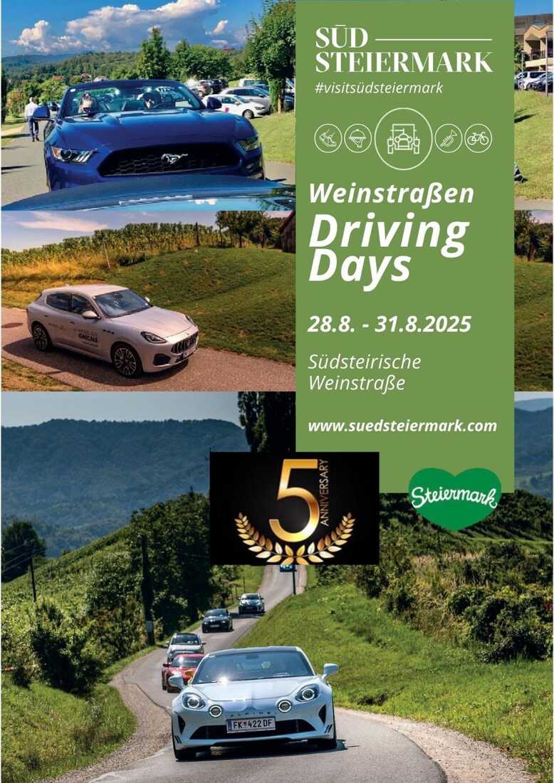 »Dnevi vožnje športnih avtomobilov po vinskih cestah 2025« praznujejo peto obletnico. Vozniki iz štirih držav se bodo od 28. avgusta do 1. septembra 2025, podali na pot za dober namen.
