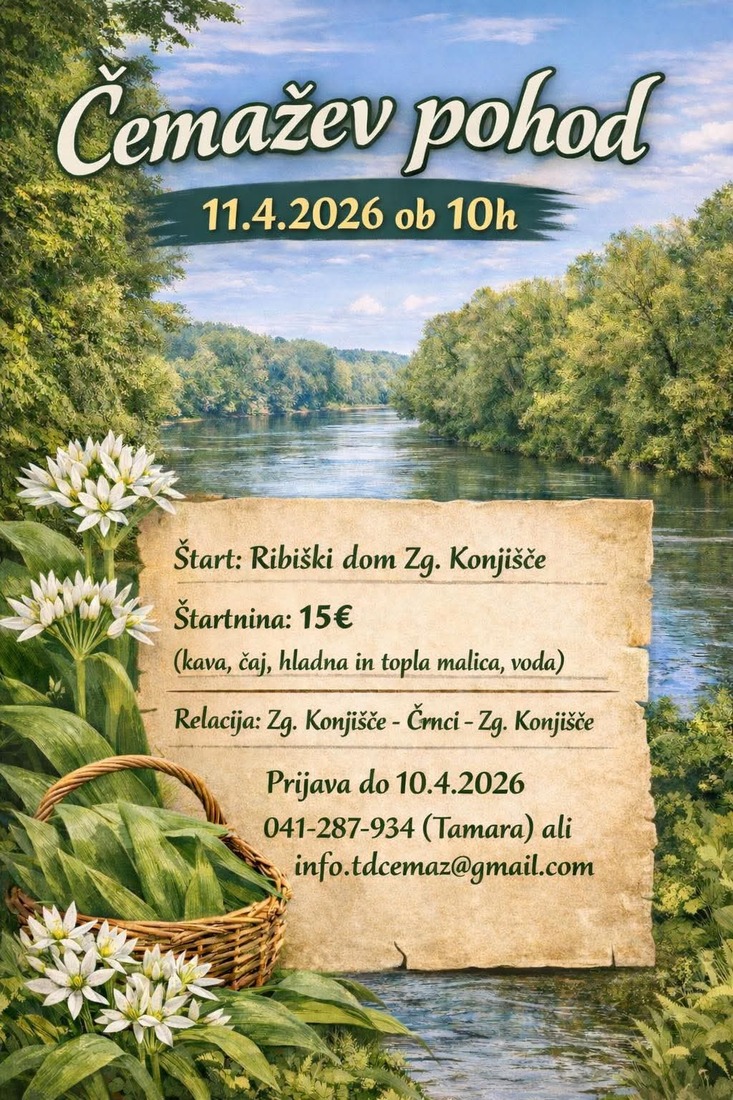 vabi na tradicionalni pohod po čemaževi poti, ki bo v soboto, 11.4.2026.